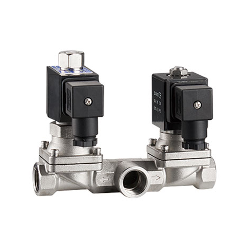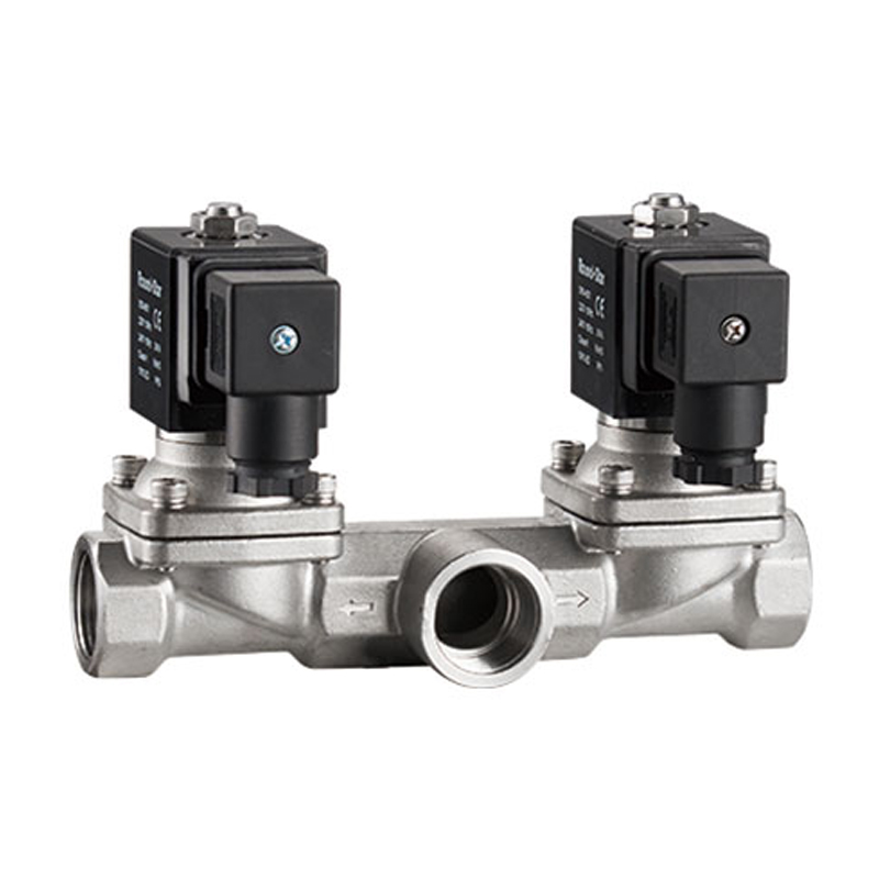 二位三通電磁閥為雙線圈控制,一個線圈瞬間通電后關閉電源、閥打開,另一個線圈瞬間通電后關閉電源、閥關閉??梢蚤L時間保持關閉或打開狀態(tài),能使線圈壽命更長。在高溫管道中使用最佳。